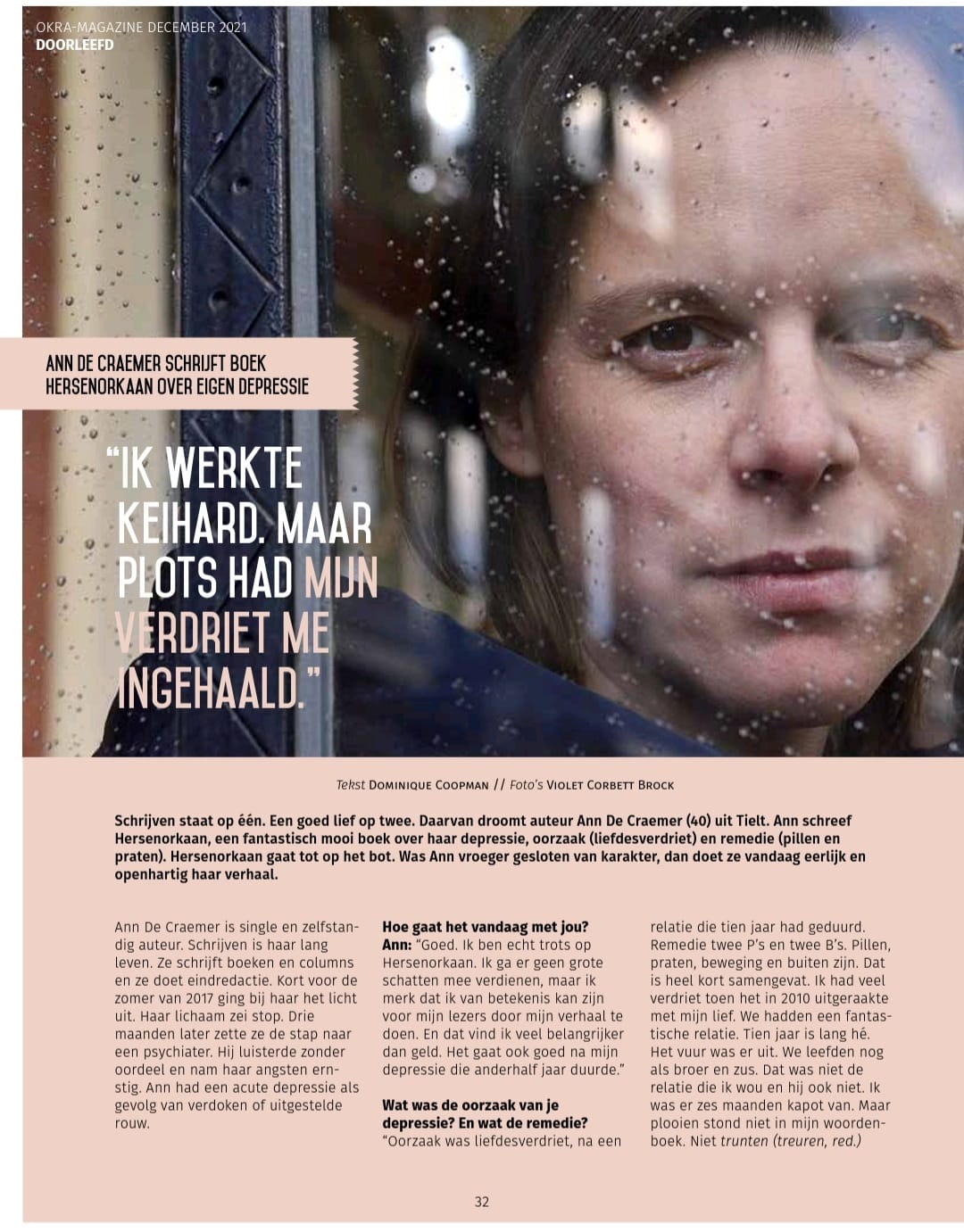 Hersenorkaan krijgt in het decembernummer van OKRA maar liefst drie pagina’s. OKRA is de grootse vereniging voorn 55-plussers in Vlaanderen en Brussel. Zelden zo fijn en empathisch geïnterviewd als door hun medewerker Dominique Coopman.