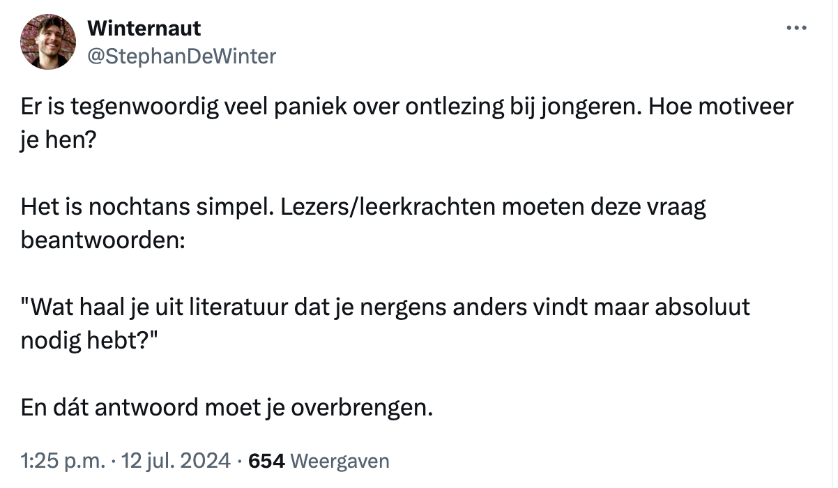 Op Twitter viel me vandaag deze post op van boekenverkoper, fervent lezer en bijna-gepubliceerd- romanschrijver Stephan De Winter.