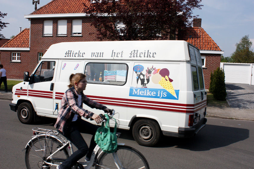 Om nog wat af te kicken van het verhaal ging ik afgelopen zaterdag in mijn thuisstad Tielt naar de ‘Grote Prijs Frans Desloover’, een wielerwedstrijd voor beloften. Het is tijdens zo’n kermiskoers dat een deel van De seingever zich afspeelt – met alle schoonheid die ik daarbij zie maar ook de lelijkheid en treurnis die mij daarbij kan overvallen. Men weze dus gewaarschuwd: De seingever is geen verhaaltje over de koekendozenromantiek waarin de koers vandaag al te vaak wordt gedrenkt, maar een boek dat ook de andere kant van de wielerennerij laat zien.