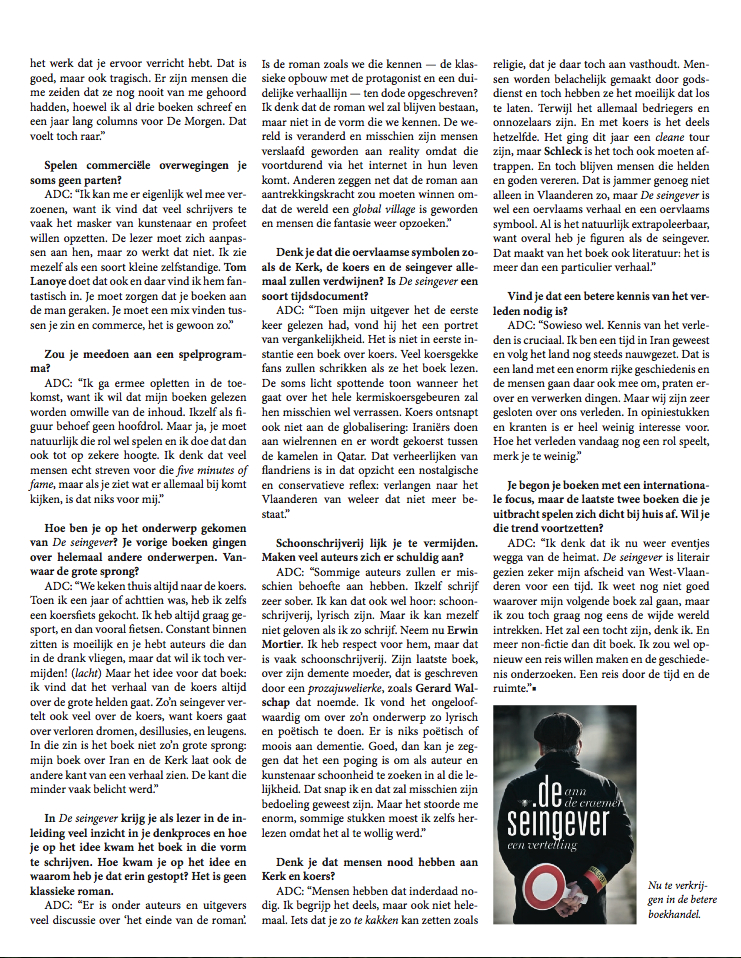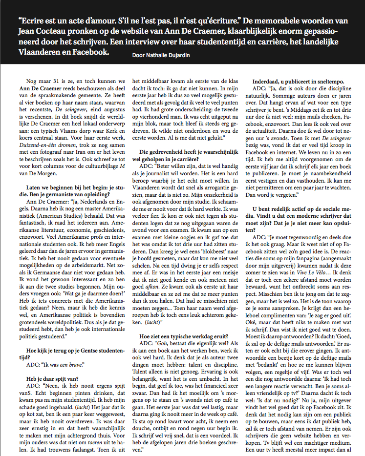 Interview op de VRT-cultuursite Cobra.be, 20 september 2012