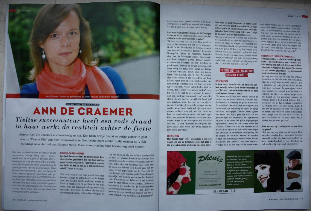 In Karaat, regionaal lifestylemagazine, november 2012 (klik op artikel om te vergroten)