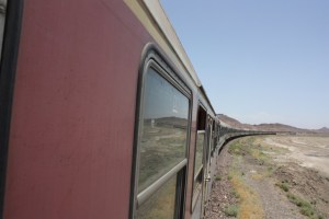 Het is warm in de trein, maar met de ramen wijd open is de hitte draaglijk. We kopen thee, water en juju kabab (chicken kebab). In Iran heeft elke trein zijn eigen restaurant, al is die naam wat overdreven. Het eten heeft weinig smaak, maar de weg is nog lang en we kunnen beter met een volle maag toekomen in Qom.