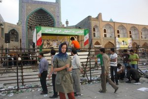 De politiek was hier ver weg: geen affiches van Ahmadinejad of Mousavi maar oude lemen huizen, verdwaalde katten en vrouwen in vrolijke chadors. Wat precies de reden is weet ik niet, maar op het platteland, ver weg van de controle van politie en andere officiële instanties, verkiezen vrouwen misschien de bebloemde chador boven de zwarte.