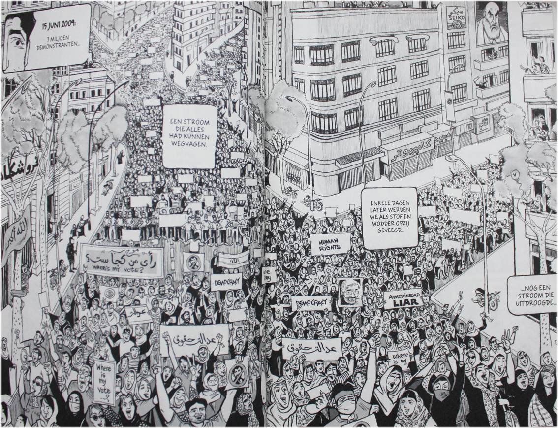 Uit de Iraanse strip ‘Zahra’s Paradise’ – klik op de afbeelding om te vergroten