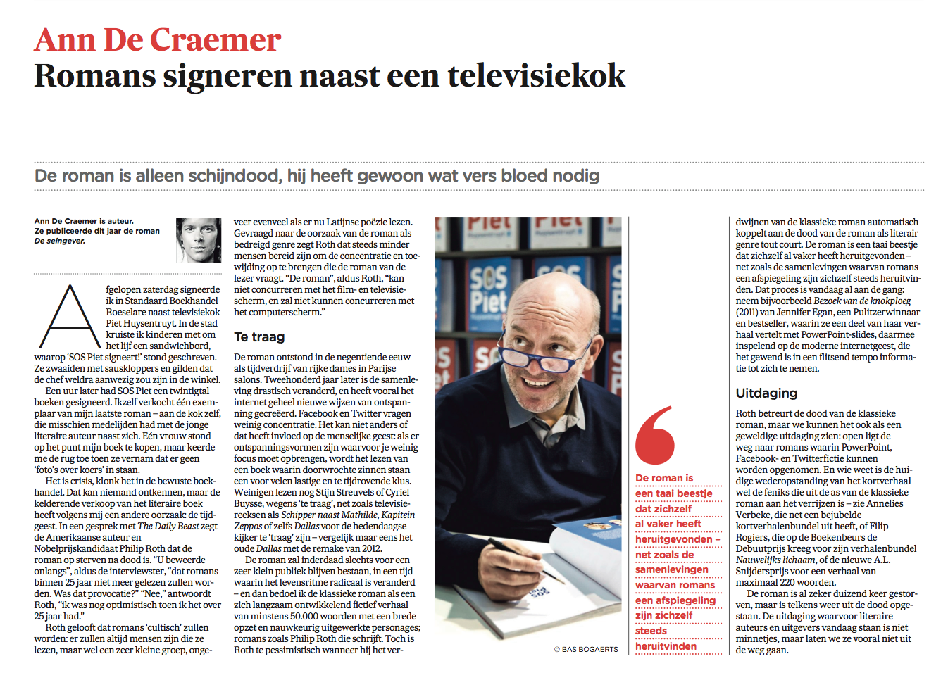 Zelf heb ik, om één voorbeeld te noemen, de mens en een deel van deze wereld beter leren kennen met de romans van Philip Roth. Met American Pastoral, The Human Stain en The Plot against America leerde hij me de Amerikaanse tijdsgeest in verschillende fases van de geschiedenis beter begrijpen dan een stapel non-fictieboeken ooit zal kunnen doen. Bovenal vergrootte Roth mijn inzicht in de mens; in zijn obsessies, zijn angsten, zijn driften en zijn verlangens. Toen ik Exit Ghost las, voelde ik wat het betekent om een man van zeventig te zijn met erectieproblemen maar met een verzengend verlangen naar een beeldschone jonge vrouw.