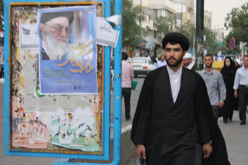 Even later bevinden we ons in de drukke hoofdstraat van Qom, en hier is Ahmadinejad werkelijk overal aanwezig. Vrouwen in zwarte chador houden met de ene hand hun gewaad vast en in de andere hand een poster van hun president. Kapperszaken, bakkerijen, boekenwinkeltjes: het is al Ahmadinejad wat de klok slaat.